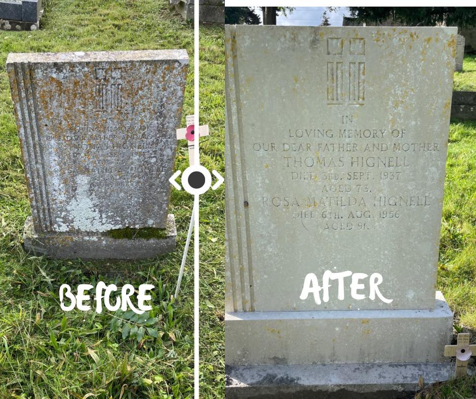 Army Veteran, Jenny Naylor, and former service spouse, Sue Purslow, refurbish Percy’s memorial headstoneGunner P Colborn WW2